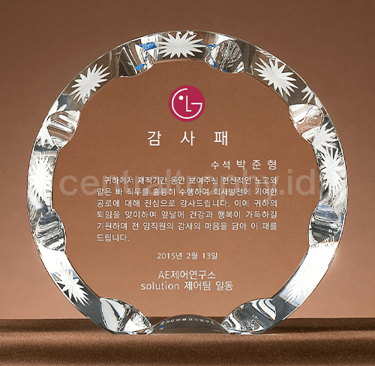 "Berikan apresiasi yang tak terlupakan dengan kemewahan Plakat Crystal. Dibuat dari bahan kristal murni dengan kejernihan tinggi, plakat ini menawarkan tampilan eksklusif dan bobot yang mantap. Pilihan sempurna untuk penghargaan korporat, kenang-kenangan seminar, atau hadiah perpisahan istimewa."